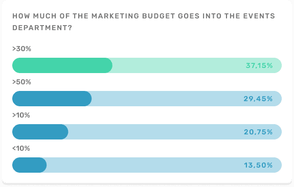 At 37.5% of the surveyed companies, more than 30% of the total marketing budget flows into the event department. (Sweap, 2022)