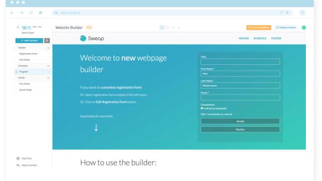 Sweap enables event teams to create, host and analyse professionally designed in-person, virtual and hybrid events while engaging with your audience before, during and after you event.