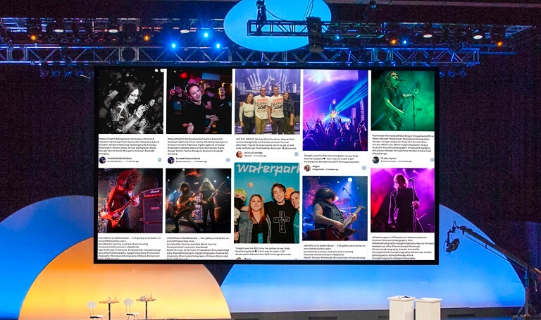 Here ist a great example of a Social Wall at an event. Source: /www.eventindustrynews.com