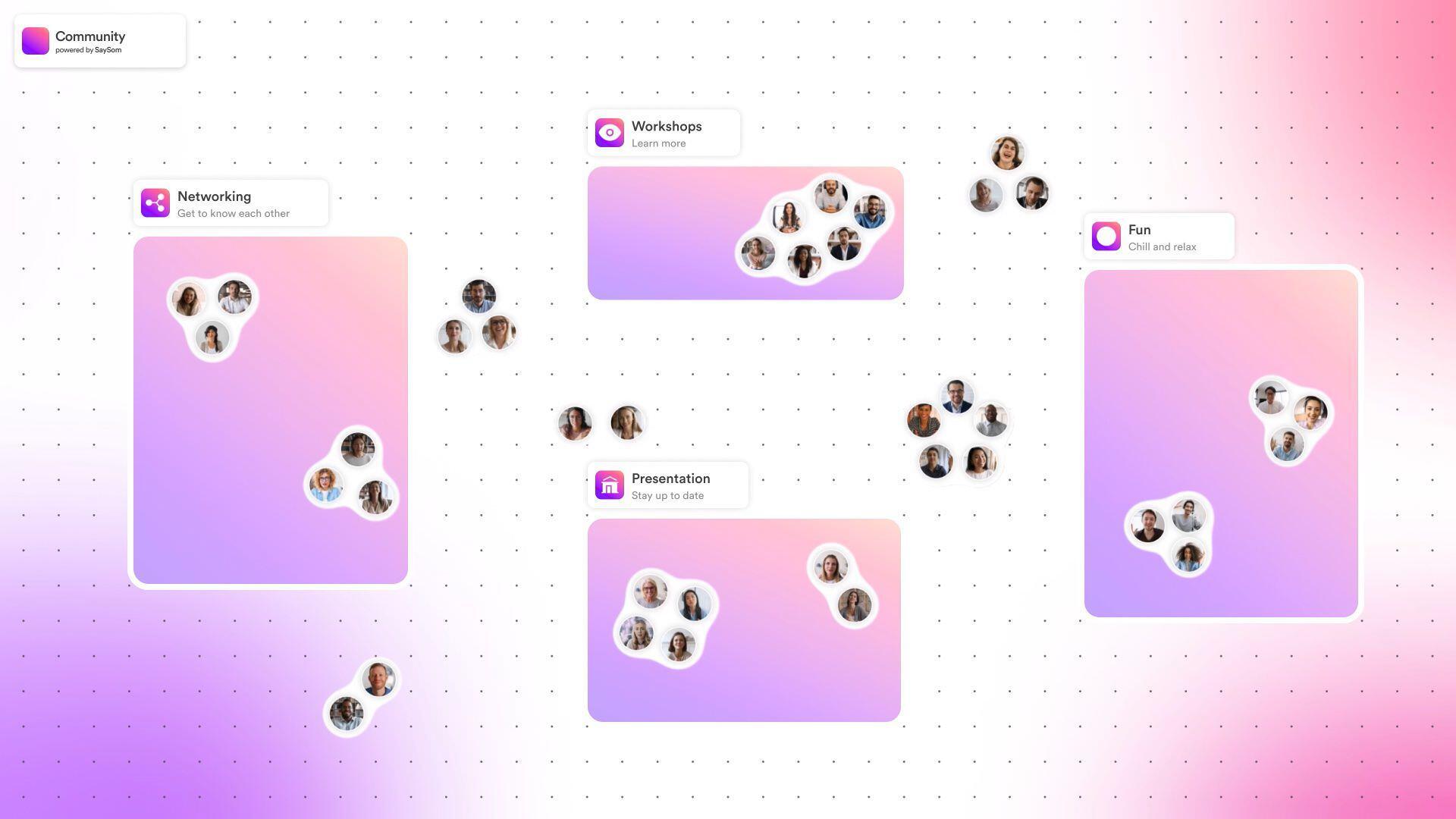 SaySom ist ein Networking-Tool für Online-Events. Mit Sweap kann SaySom ganz einfach in dein virtuelles Event integriert werden. So wird es für die Teilnehmer/innen noch einfacher, sich zu treffen und danach auf deiner Veranstaltungsseite zu bleiben.