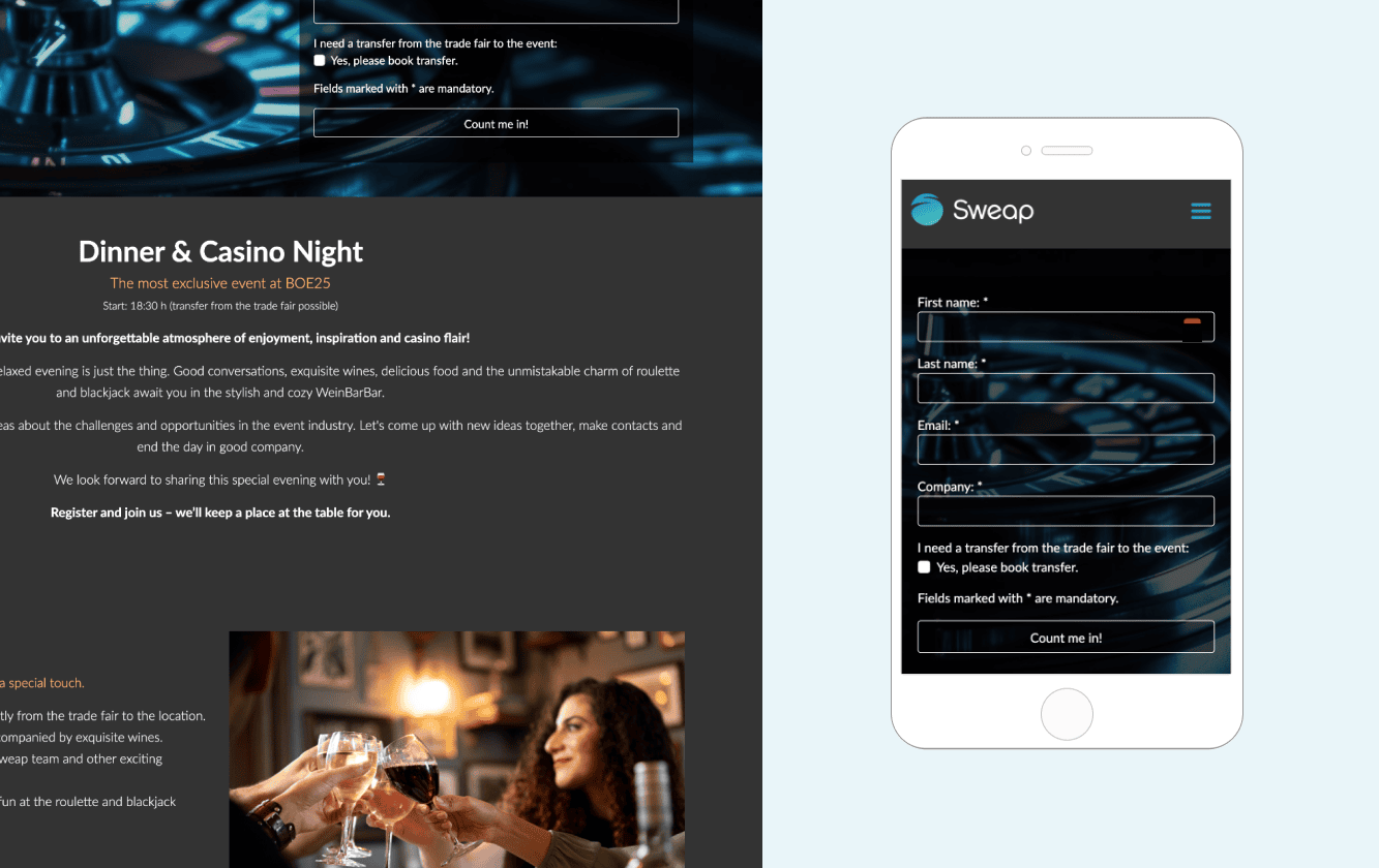 Would you like to create beautiful, tailored event invitations for your events? Then try Sweap for free. Get started now.
