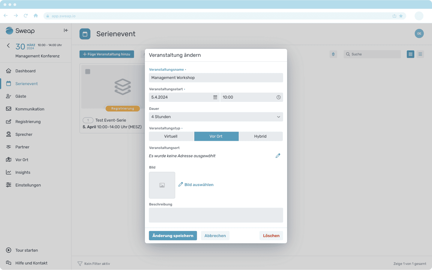 Sweap ermöglicht eine dynamische Anpassung der Event-Serie, basierend auf Event-Insights. Somit kannst du auch auf kurzfriste Änderungen und Anpassungen reagieren.