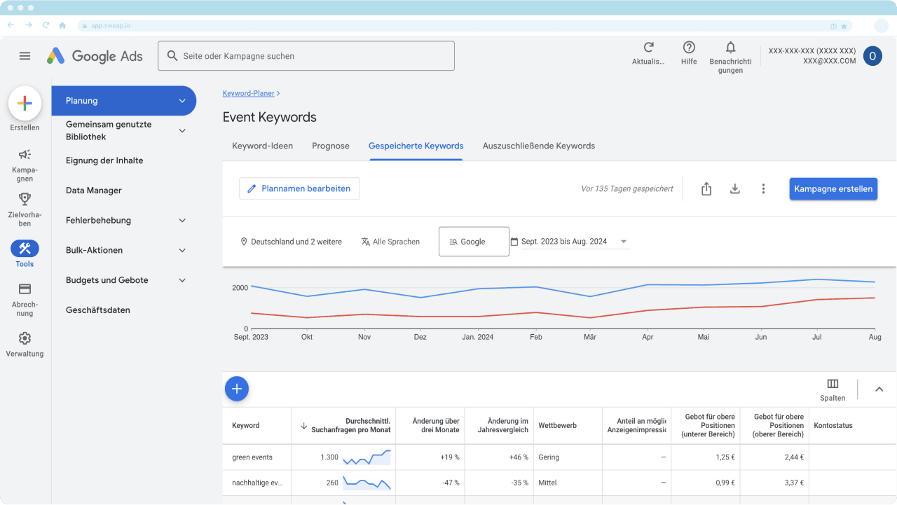 Der Google Keyword Planner hilft dir bei der Suche nach den gefragtesten Keywords für dein Event
