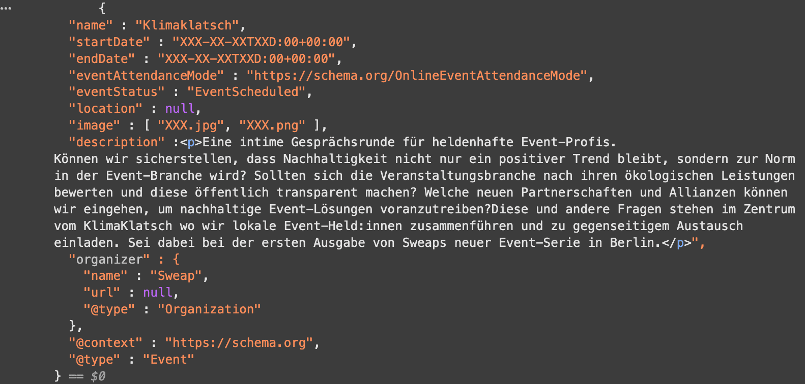 Sorgenfrei mit Sweap Event-Webseiten: Schema-Markup ist schon allen Elementen hinzugefügt