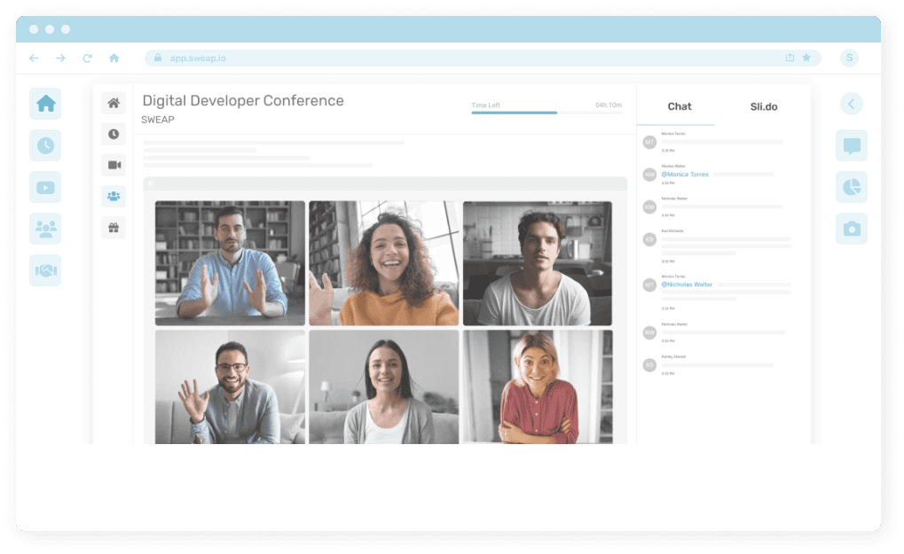 Begeistere deine Gäste mit der virtuellen Event-Plattform von Sweap. Erstelle deine virtuelle Event-Plattform, die deine Marke in den Vordergrund stellt - ohne Programmierkenntnisse.