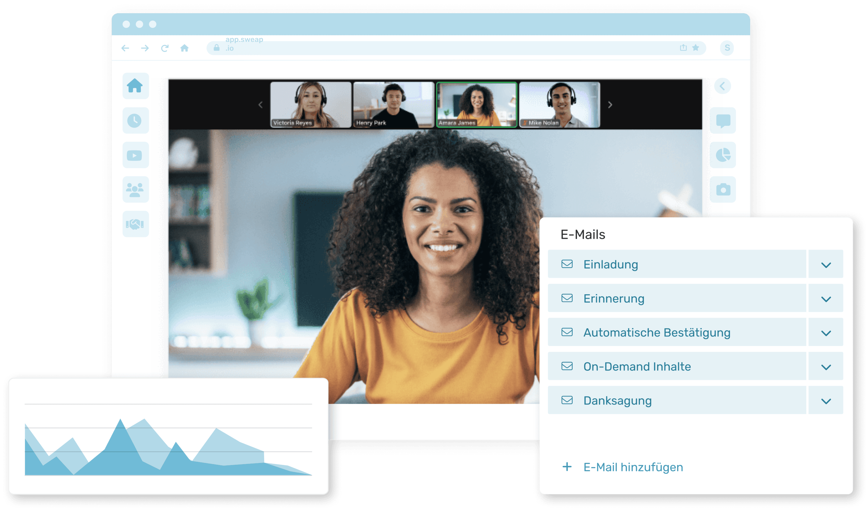 Wenn du etwas nicht messen kannst, kannst du es nicht verbessern. Sweap bietet eine große Auswahl an Analysetools, die dir garantieren, dass du immer einen Überblick darüber hast, wie deine Webinar-Kampagnen laufen, welche E-Mails am besten konvertieren und was du für einen größeren Webinar-Erfolg in der Zukunft verbessern können.