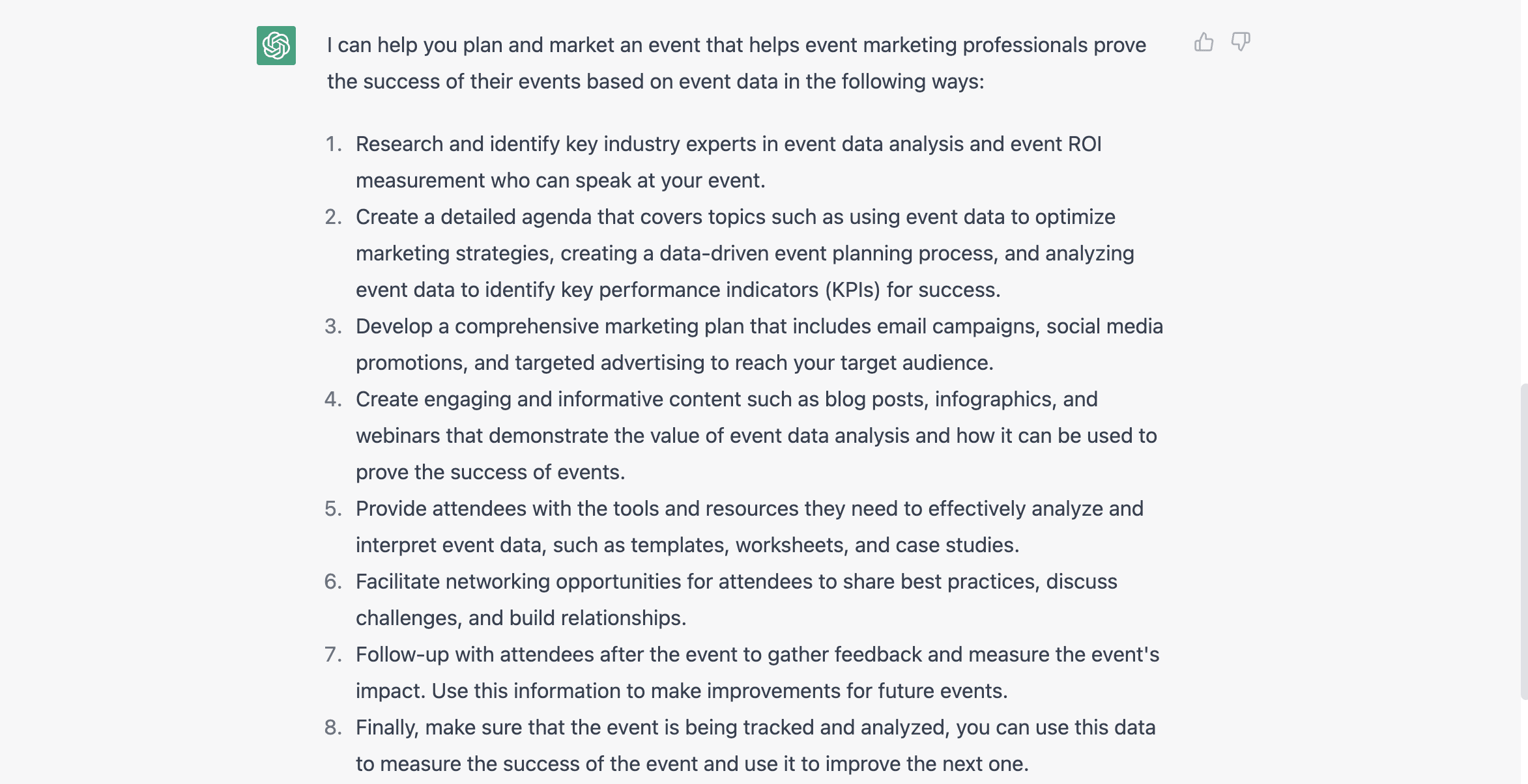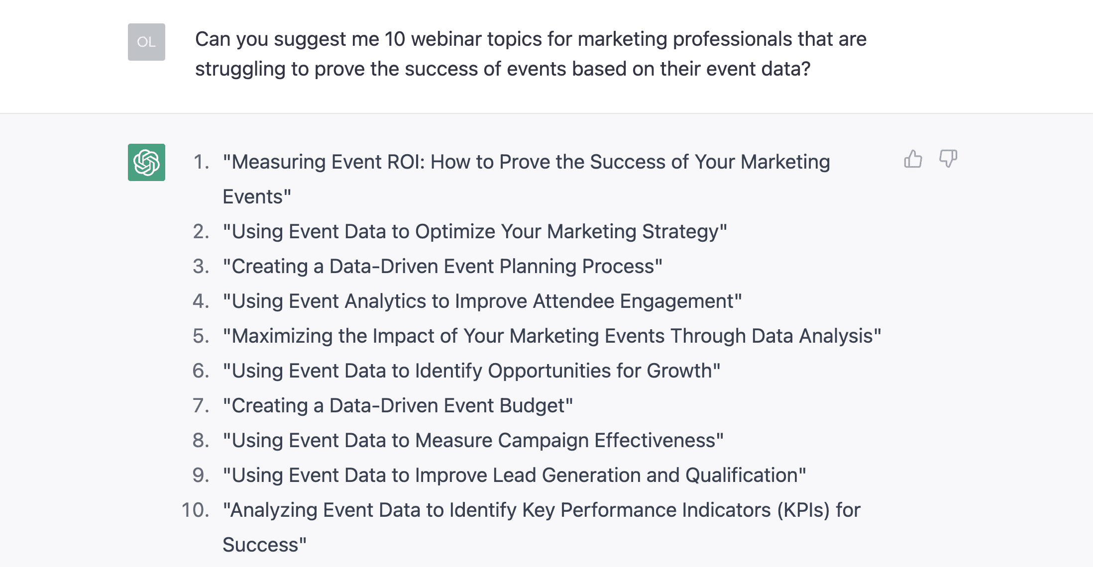 So after creating all assets for our webinar on event ROI and data, we wanted to give ChatGPT the chance to promote itself. This was our final request: