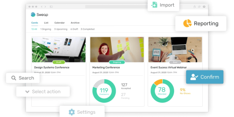 Forget about the manual tasks and get digital with the right event marketing software, such as Sweap's Event Efficiency Platform. Automation will save you from manual hassles and increase efficiency in your processes.