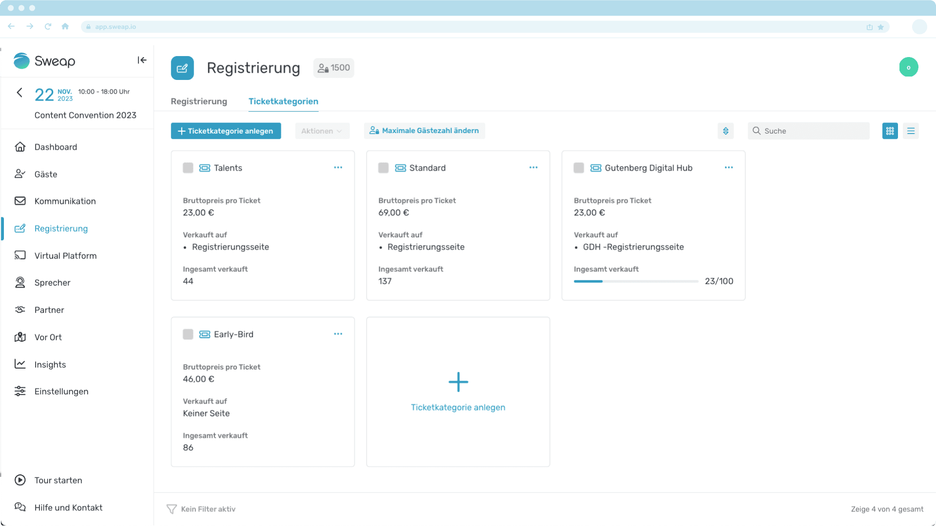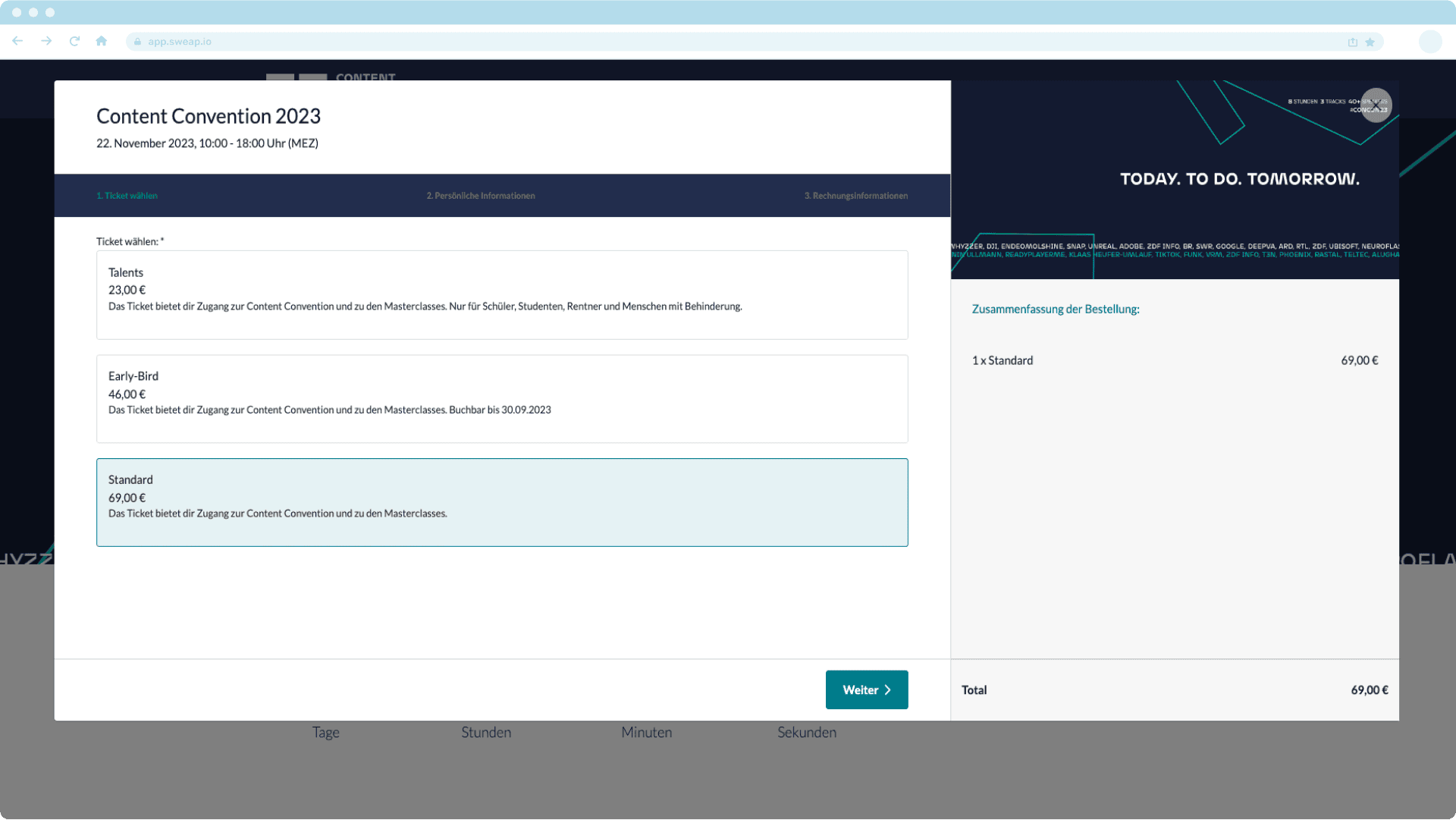 Three ticket categories were defined in advance - discounted, early bird and standard - which were configured via Sweap's user-friendly interface. This differentiation made it possible to address different target groups in a targeted manner.